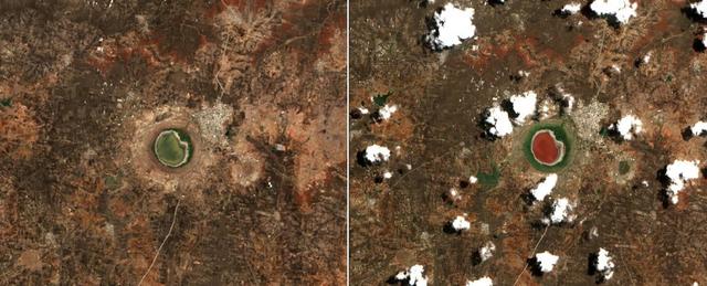 當然在我們看完報告之後,就知道這是一個比較“奇特”的火山口,屬於自然變化的情況,並且在全球其他地區也可能出現相應的問題,初步預計是一種物質在發生反應,終極答案還沒確定。為何火山口湖水為何變紅?首先我們可以看到,在衛星拍攝的圖像之中,在以前該火山口是屬於綠色的,而如今卻變成了“紅色”,而這個“紅色”火山口是一個由隕石形成的湖泊,大約在50000年前,一顆隕石撞擊到了印度地區,經過長時間的醞釀和發展,最終形成了這個Lonar湖,該湖泊距離印度孟買約500公里,所以非常的近,在印度孟買的朋友可以去看看,看看這約50000年的湖泊“異常”到底是什麼情況。