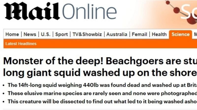 南非海灘日前出現了一隻極為罕見的巨型生物,一隻身長4公尺、原本居住於900公尺以下深海區域的「大王烏賊」(giant squid)完整屍體橫躺沙灘上,令路過民眾及相關研究的科學家都感到相當興奮;目前該烏賊的屍體已交由當地博物館冰凍保存,等到新冠肺炎(COVID-19)疫情趨緩後,將進行解剖調查並公開展示。