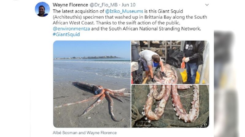 南非自然歷史博物館(The Iziko South African Museum)的海洋無脊椎動物專家佛羅倫斯(Wayne Florence)得知此事後,對於能夠親眼見到大王烏賊感到非常興奮,並表示雖然目前還不清楚烏賊的死亡原因,但因為牠的屍體相當完整,排除被捕漁工具殺死的可能,待日後新冠肺炎禁令解除,才能進行進一步研究,而屆時也將做成標本,放在博物館中供民眾觀賞。