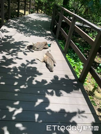 透過照片可以看見,2隻孔雀一起躺在木頭步道上呼呼大睡,還刻意挑選沒有樹蔭的位置,共同享受愜意的午後時光,畫面羨煞不少遊客。陳小姐接受《ETtoday寵物雲》採訪時表示,起初遠遠看見鳥躺在地上,還以為牠們是不是生病了,怎料向前查看時,「2隻孔雀同時抬頭,露出『你打擾到我了、只是睡覺而已不要大驚小怪』的表情!」►票券擺到過期?逮就補!快來換成東森幣