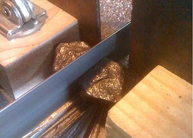 因為隕石是比較稀少的,他能得到這塊隕石也不容易,這個隕石比較大,所以他用切割機來切割隕石,隕石的硬度非常強,他花了半天的時間才把隕石一分為二。