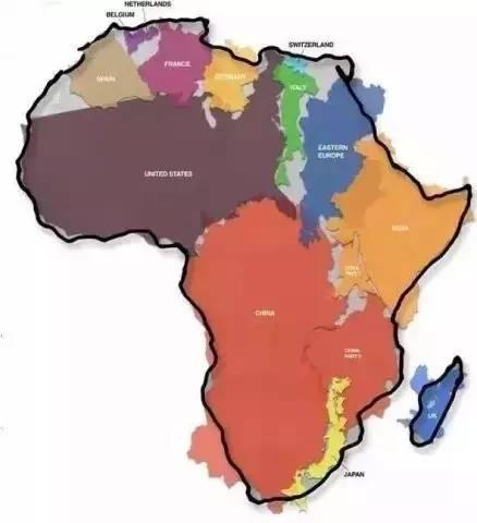 還有,非洲比你想像的還要大多了,看看一些國家塞進來的樣子…把美國、西班牙、比利時、荷蘭、法國、德國、義大利、瑞士、東歐、印度、中國的一部分、英國、日本…全都放進去。