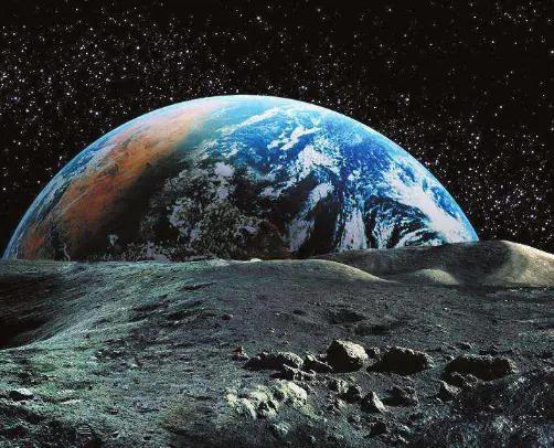 在月球上看到的地球看到的地球是水藍夾雜著白色的巨大球體。即美麗又有著震撼人心的恐懼。