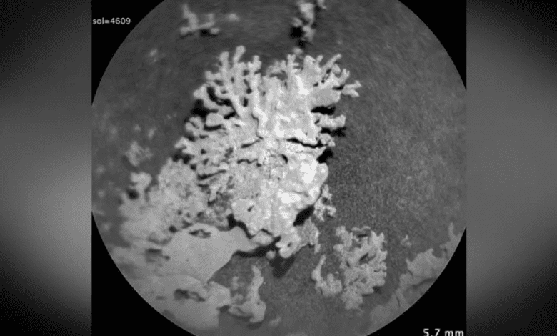 NASA在8月4日發表的聲明中說,這塊淺色岩石直徑約1英寸(2.5厘米),由「好奇號」於7月24日在火星蓋爾隕石坑(Gale Crater)內發現,外形與地球海洋中的造礁珊瑚驚人相似。畫面中,分枝狀結構纖細精巧,與地球珊瑚幾乎無異。