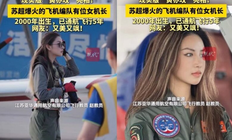 2025年大陸江蘇省城市足球聯賽開幕,開幕當天有安排5駕飛機衝場,沒想到其中一名飛機駕駛,居然是一名00後的美女,當地媒體進行採訪後,在網路上爆火,網友直誇「又美又颯」。