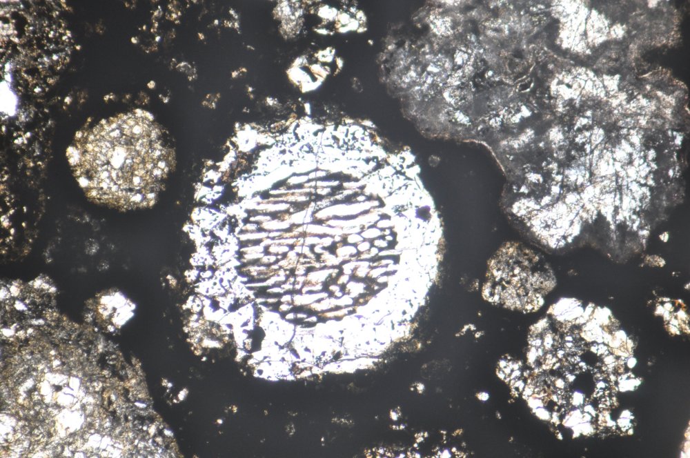 ▲ 隕石在顯微鏡下呈現球狀的球粒。(Source:京都大學三宅亮)