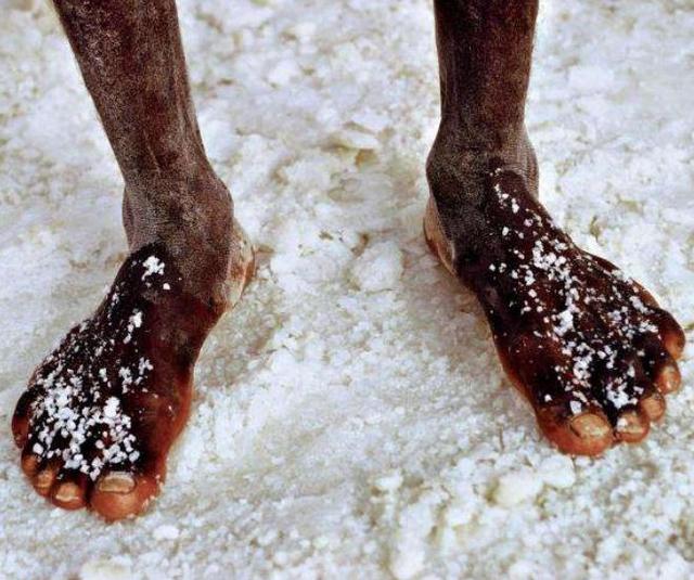最關鍵的是他們也沒有什麼可以用來防護的工具,全是靠自己的身體去承受這些,所以在經過陽光暴曬之後,身上黑色的皮膚就會變成白色,很多人看到這裡就會疑惑,為什麼他們不趕緊洗掉呢?當然是因為非洲本來就非常的缺水,而且這還算是比較輕的影響,如果干的時間長了,或許就要面臨殘疾的風險。