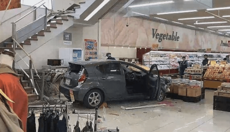釧路警 察署指出,肇事駕駛應該是要踩煞車卻誤踩油門,才會從屋頂暴衝摔落1樓,當時超市尚在營業中,所幸員工和顧客都沒有受傷。
