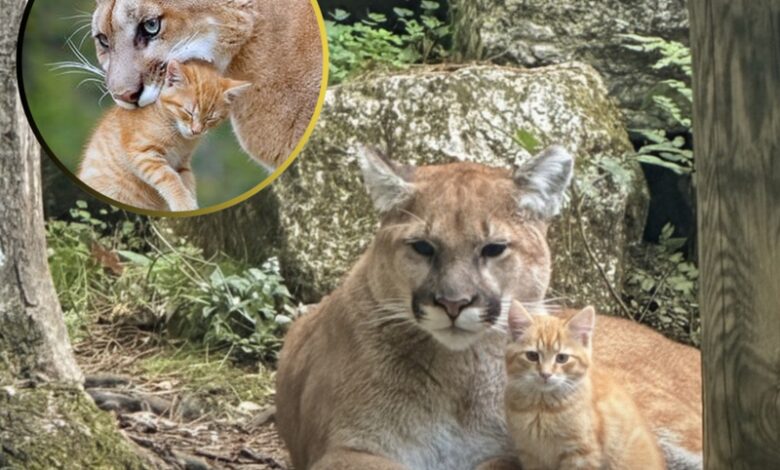 美洲獅把小橘貓當幼崽? 全網瘋傳「溫馨奇照」