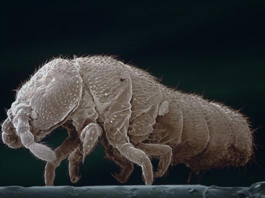 南極彈尾蟲是南極大陸上最主要的陸地動物之一,它們以藻類和地衣為食,會吃到黏在食物上的塑料碎片。圖片來源:British Antarctic Survey/SPL