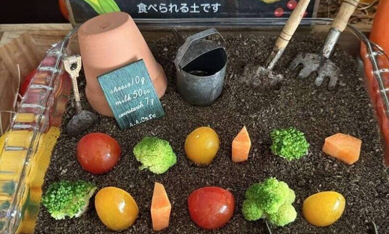 通常說到「吃土」大多是指荷包空空時的形容詞,不過日本北海道這間飯店的自助早餐真的看得到菜在一片田野上,寫著「土壤是手工製作,可以食用,材料有日高海帶粉、麵包屑、鹽、橄欖油調味」,意味著真的可以「吃土」。
