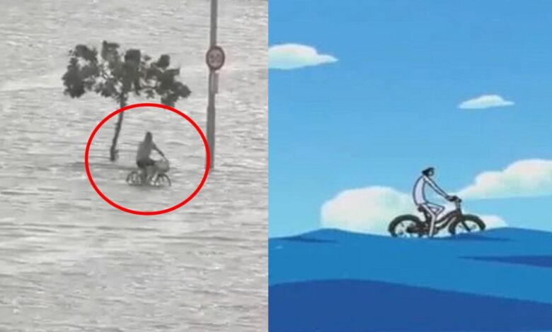 宜蘭淹水驚見水上單車 網驚呼:那是海賊王青雉