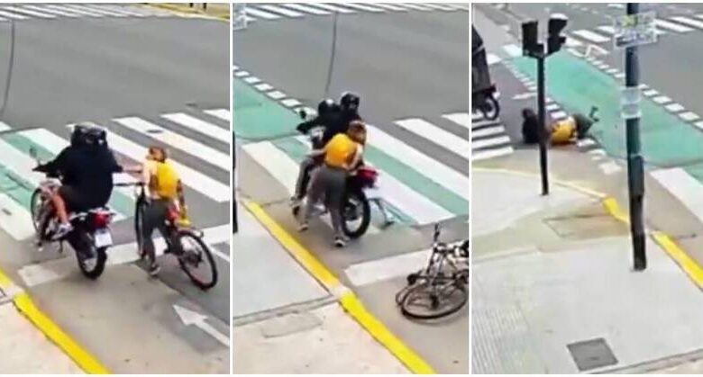 阿根廷布宜諾斯艾利斯(Buenos Aires)一名外國女遊客16日遭遇飛車搶劫,但她拼命抵抗,還成功將歹徒拉下車,全程被路邊監視器拍下,影片曝光引發網路熱議。