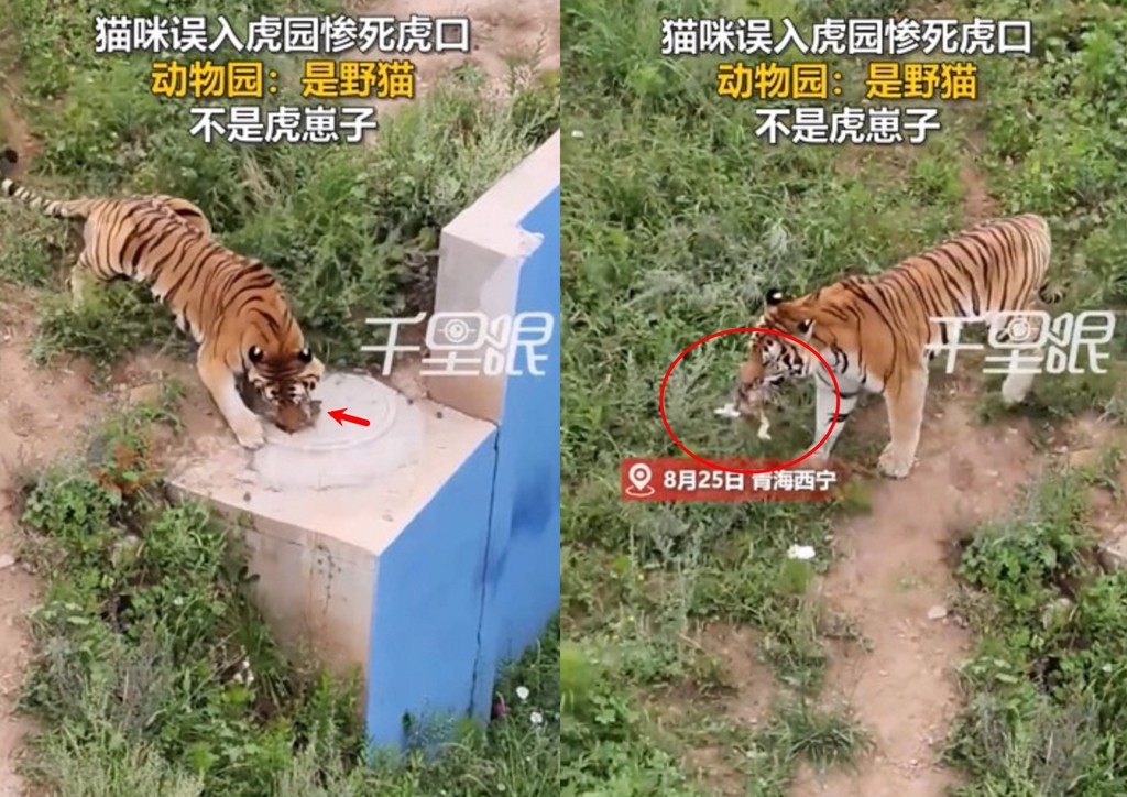 浪貓誤入老虎圈遭捕食 動物園遊客驚悚目擊