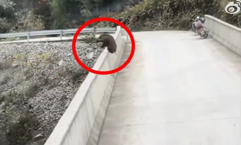 這起小山豬偷吃被抓包,寧願跳橋寧死不屈的事件,發生重慶城口縣,當時農村內的居民開車經過農田,發現有隻小山豬在挖地偷吃紅薯,居民立即按喇叭驅趕,沒想到小山豬在逃跑過程,經過小橋時,疑似發現對岸也有車,可能怕被抓,情急之下往橋旁邊一跳,當場墜落身 亡。