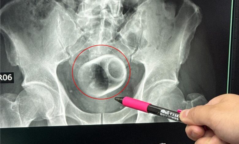 該名患者到院時稱,已經3天無法大便很困擾,害羞不敢提及自己肛門塞了一個杯子,經過X光攝影,可見骨盆腔內有一個直徑約6公分、高約8公分的杯子,杯口朝下,自己當時見狀嚇一大跳,立即安排進手術室,要把杯子拿出來。