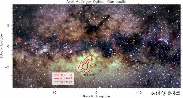 這一特徵被科學家稱為“傾斜的圓盤”,因為與銀河系的其他部分相比,它看起來是傾斜的。這一特徵的位置無法用已知物理現象(如星系旋轉)來解釋。現在研究人員有一個難得的機會來研究這個傾斜的圓盤,它從通常的斑駁塵埃覆蓋中解脫出來,通過使用光學來進行研究。通常,傾斜的圓盤必須用紅外或無線電光技術進行研究,這使得研究人員可以通過塵埃進行觀察,但限制了瞭解更多電離氣體的能力。銀河系中心被電離如能夠在光學光線下進行這些測量,將能夠更容易地將銀河系核心與其他星系進行比較。許多研究都測量了宇宙中數千個螺旋星系中心電離氣體的數量和質量,這也是第一次能夠直接將銀河系的測量結果與這麼多星系測量結果進行比較。研究人員利用現有模型,試圖預測這些發射區應該有多少電離氣體。來自WHAM望遠鏡的原始數據使研究人員能夠改進預測,直到獲得該結構的準確3D照片。