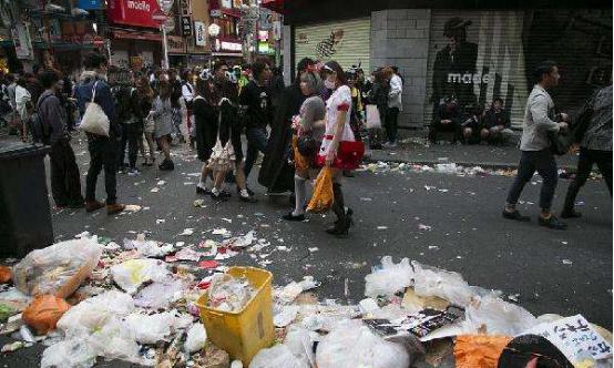 在這種強而有力的“鞭策”下,日本人素質想不高也不行了,但是這並不能塑造出傳說中的“高素質”民族性,而是讓他們的本性被壓抑著,一旦找到出口就會發洩出來。就比如萬聖夜之後,東京街頭到處都是雜亂的垃圾,一旦罰不責眾,他們就會表現出原來的模樣。而平時所展現的,只是不得不表現出的“謊言”而已。