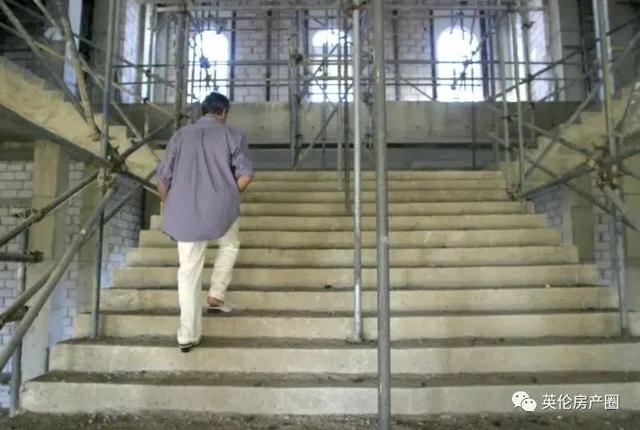 樓梯兩側的腳手架也沒有拆除,冰冷的鋼筋水泥讓這裡根本不像一個家。