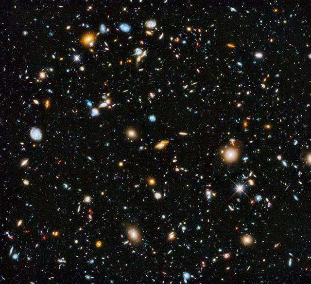 1、哈勃“極深場”上圖中的照片就是哈勃“極深場”,裡麵包含了5000多個星系。之前我們認為在宇宙黑暗的天區裡,那裡看不到一絲的光線,應該沒有恆星也沒有星系。但哈勃望遠鏡正是選擇了這樣一個看似什麼都沒有的黑暗空間,進行了長達23天的曝光,收集其中可能的每一個光子。最後就獲得了上圖驚人的結果,哈勃所觀測的這片空間只佔了全天空的1/32,000,000,那麼根據粗略的估計宇宙中至少有2萬億個星系。正是哈勃的觀測讓我們知道了宇宙的規模和星系的數量之多超乎人類的想像。不僅如此,我們看到的越遠,看到的宇宙就越古老。因此這次觀測也讓我們看到了宇宙年齡只有4%時候的樣子,看到了大量早期星系的模樣,讓我們瞭解了星系進化的過程,如何從最初的結構“種子”逐漸演變成現今龐大的規模。這就是哈勃“極深場”給人類帶來的啟示!