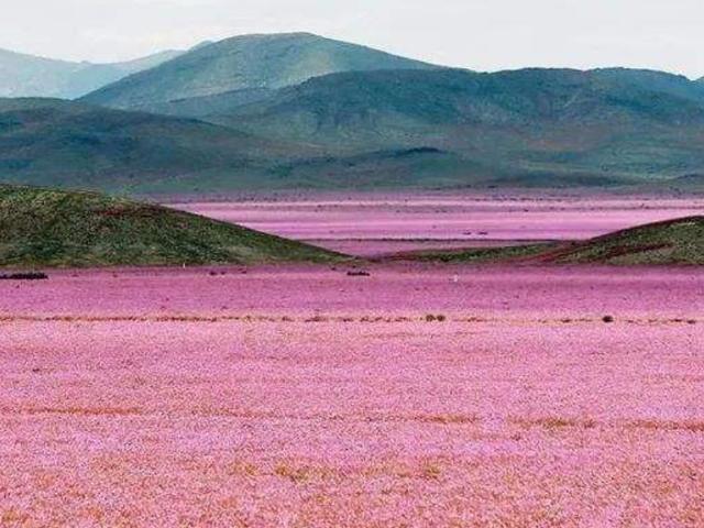 常年沒下過一滴雨的阿塔卡馬沙漠,在2015年,竟然發生了奇蹟,這裡下了一場磅礴大雨,讓本是荒漠的沙漠在一夜之間變成了另一番模樣,整個沙漠上演一副生機勃勃的景象,沙漠在一夜之間變成了一個花海世界,讓人心生嚮往。