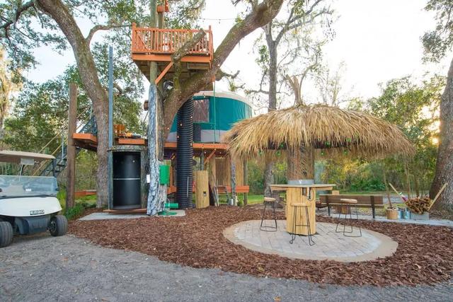 寬敞的戶外一角,還隱藏著一個神秘的叢林樹屋。
