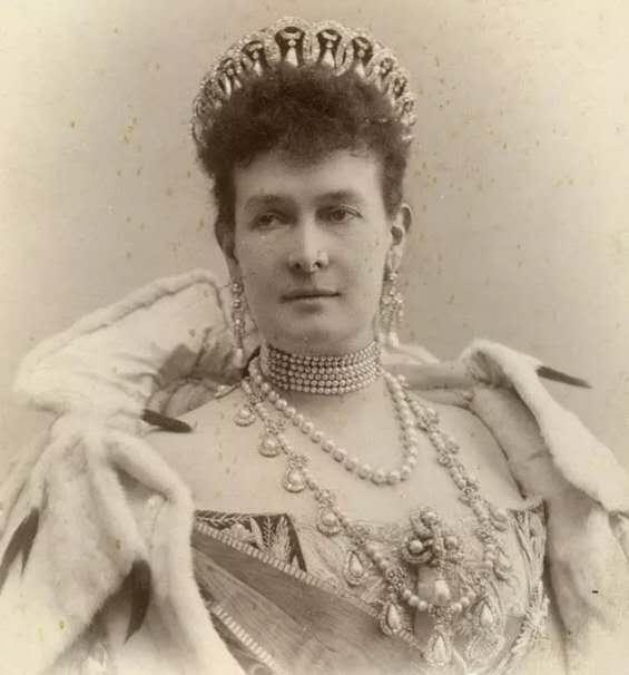 這頂王冠叫弗拉基米爾王冠,它的原主人是俄國的弗拉基米爾大公夫人。在關於亞歷山大三世皇后達格瑪公主和俄國末代皇后阿歷克斯公主的文章中,我們都提到過她。弗拉基米爾大公夫人出身梅克倫堡-什未林,丈夫是沙皇亞歷山大二世的兒子弗拉基米爾大公。人們對她的評價很極端,喜歡她的人說她極具個人魅力。討厭她的人都說她太有野心。她活躍在當時的俄國上流圈,是比皇后還出名的人物。而她和兩任皇后的爭鋒相對也是當時貴族圈樂此不疲的談資。1弗拉基米爾大公夫人,全名瑪麗· 瑪麗·亞歷山德琳·伊麗莎白·埃莉諾,1854年出生。嫁入俄國王室後改名瑪利亞·帕夫洛芙娜。她的父親是梅克倫堡-什未林公爵腓特烈·弗朗西斯二世。母親是羅伊斯-孔斯特裡茲的奧古斯塔公主。