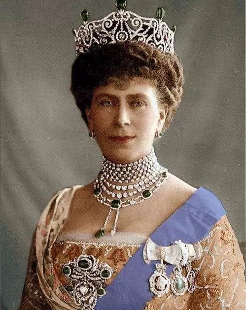 阿歷克斯一向討厭梅麗塔這個嫂子就猶豫了半天給梅麗塔拍電報,梅麗塔緊趕慢趕也沒來得及見小伊麗莎白最後一面。從此兩個人的仇不共戴天。梅麗塔嫁給基里爾,尼古拉二世直接去除了基里爾的皇室頭銜,被流放外地。弗拉基米爾大公跑到尼古拉二世那裡大吵了一架。仇就越結越深。次子鮑裡斯和三子安德烈又和平民女子在一起,弄得瑪利亞頭疼不已。唯一的女兒經歷了好幾次退婚後嫁給了不富裕的希臘旁支王子尼古拉斯。俄國革命爆發後,瑪利亞拒絕離開俄國,後來情況越來越糟糕,她不得不連夜逃跑,她的兒子鮑裡斯和朋友伯蒂冒著危險跑回王宮帶走了大量珠寶。而瑪利亞也因為逃亡路上條件太差,身體狀況每況愈下。1920年,這位做了一輩子皇后夢的大公夫人在逃亡的路上去世。她的珠寶則大部分留給了女兒伊蓮娜。當時的希臘政局動盪,伊蓮娜也開始逃亡,不時變賣珠寶換取家用。那頂弗拉基米爾王冠就被當時的“珠寶商”喬治五世的妻子瑪麗王后以30000英鎊的價格購入。這頂王冠在逃亡過程中受到了損害,瑪麗王后拿到後開始修復。瑪麗王后,她的珠寶比女王還多,經歷六朝的她故事比珠寶還精彩。
