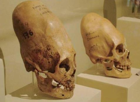 導語:人類形猿人到人的演化中,生理和心理素質都在不斷發生變化。從總體發展來看,現代人較之猿人腦容量更大、四肢協調而靈活,雙腳靈敏且纖細,這些生理特徵上的改變使得人們更好地適應了自然條件的變化。而這些變化中尤其以腦部的變化最為突出,一方面在幾千甚至上萬年的時間中古代人類的頭骨化石最容易保存,另一方面頭骨化石的變化能夠為我們更加直觀地反映古人類的演化和發展。從頭骨化石上我們觀察到一種非常特殊的變形現象,即顱骨異形現象,這種人工變形意義為何,它反映出古代人們怎樣的演化路徑,或者說,它如果是人為,又體現出古人們怎樣的社會文化觀念呢?一、顱骨變形的發現和特點顱骨變形,顧名思義就是顱骨形態發生了人為或者自然原因造成的變形現象,這種變形現象既包括長顱骨變形,也包括短顱骨變形,以前者更加多見。長顱骨變形的主要特點是顱骨非常高大,枕骨則向後傾斜明顯,導致頭骨中部的前囪點高聳、顱骨部分佔頭骨比重更大等特點。而短顱骨的特點則是顱骨扁平且寬,顱骨高度明顯降低,左右側顱骨均呈現出向外擴張的態勢,顯得頭骨圓而短。